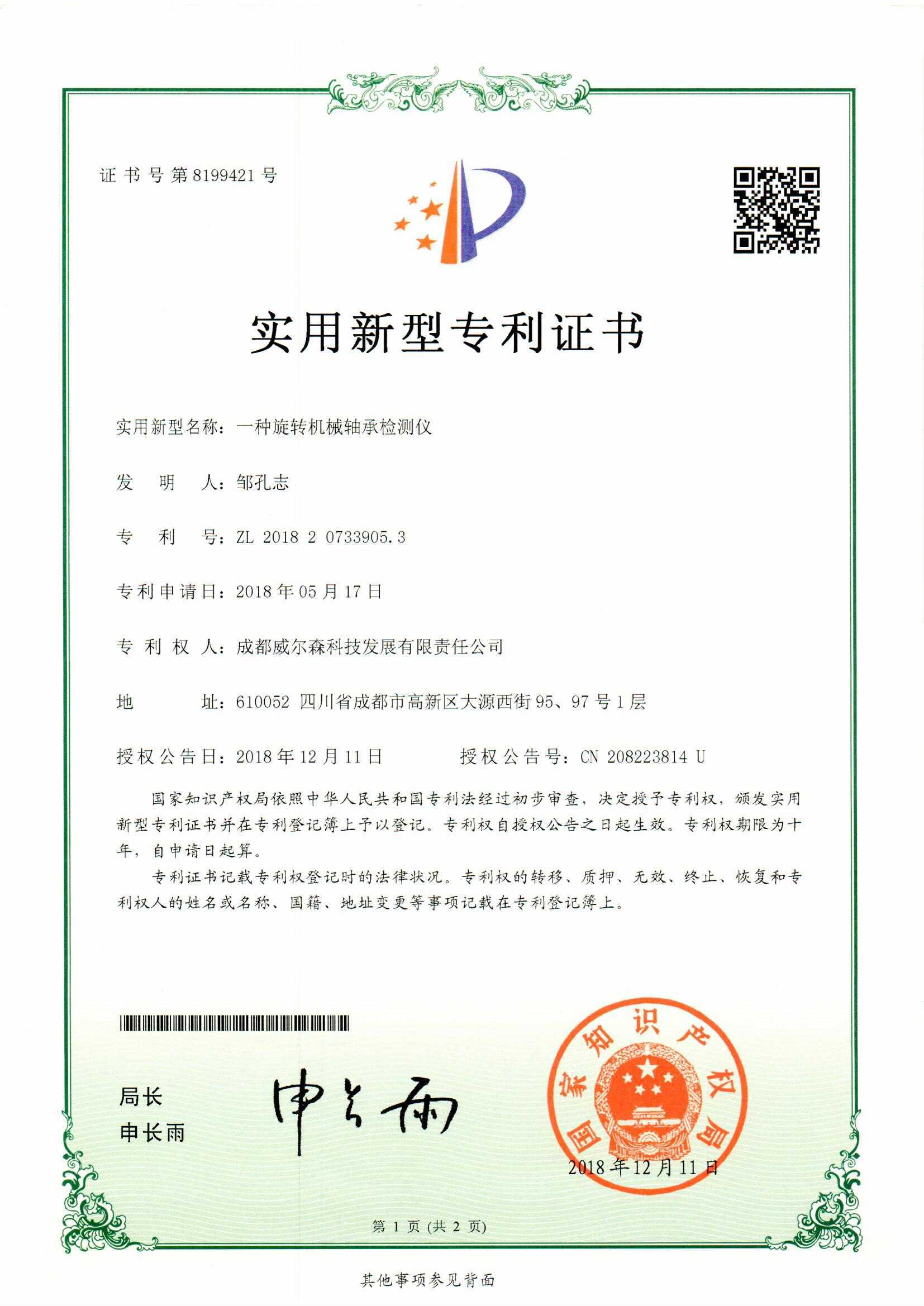 成都威尔森科技发展有限责任公司是成都市高新技术企业,公司是集科研、开发、生产、销售服务于一体的工业仪器仪表及传感器生产型厂家:公司产品通过ISO9001认证,公司实力雄厚,检测设备先进;具有先进完善的国际化管理制度;拥有一批年富力强、高素质、高技术水平的专业研发队伍、工程技术队伍及销售队伍。公司同国外具有丰富机械振动经验公司合作,代理德国申克振动监测产品,美国罗克韦尔振动监测产品、美国本特利振动监测产品,并同国内外著名高校及研究院携手合作,长期致力于旋转机械状态监测保护(TSI)、故障诊断分析等产品的研发及现场服务。开发研制出具有自主知识产权的产品涵盖各类旋转机械运行状态监测的保护仪表,和故障诊断分析系统、金属结构在线监测系统(弧形闸门、平面闸门、船闸、液压启闭机、固卷启闭机)、机组油雾在线监测系统,油液在线监测系统、螺栓松动在线监测系统,钢丝绳无损探伤在线监测系统;还有应变传感器、倾角传感器、声发射传感器、振动传感器、振动变送器、钢丝绳检测传感器、电涡流传感器、超声波传感器、振动校验台、转速校验台等产品。